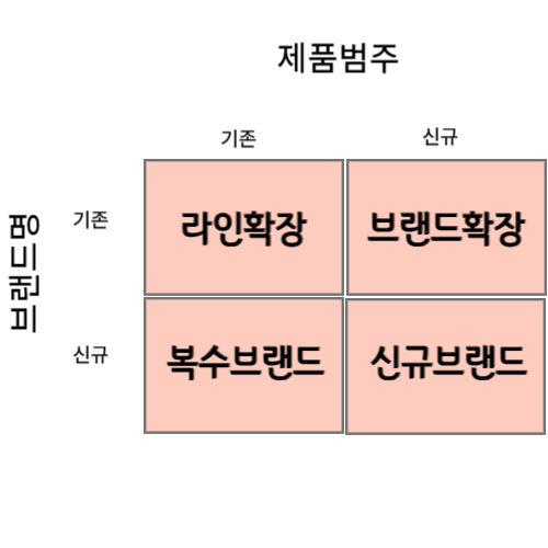 브램드 확장은 현재의 브랜드명을 새로운 제품 범주의 신제품으로 확장하는 것입니다. 브랜드 확장은 신제품의 출시되자마자 바로 소비자가 인지하고 빠르게 수용할 수 있다는 장점이 있습니다. 그리고 새로운 브랜드명을 도입하는 데 드는 높은 광고비를 절약시켜 줍니다.