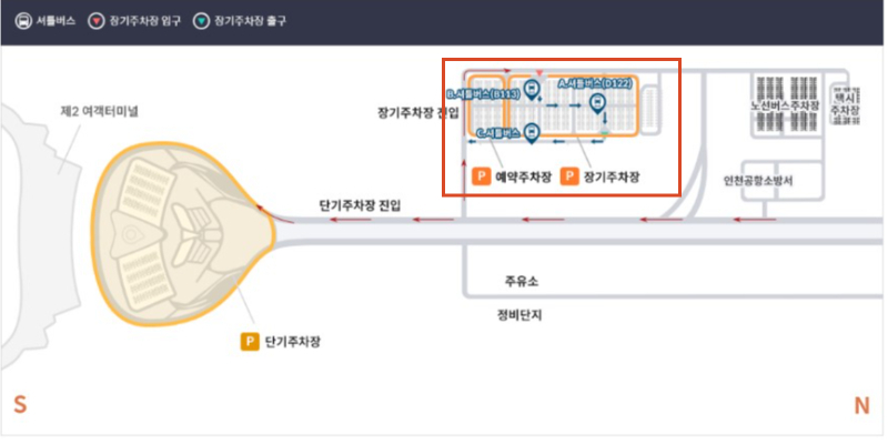 <제2 여객터미널 장기주차장 위치>
